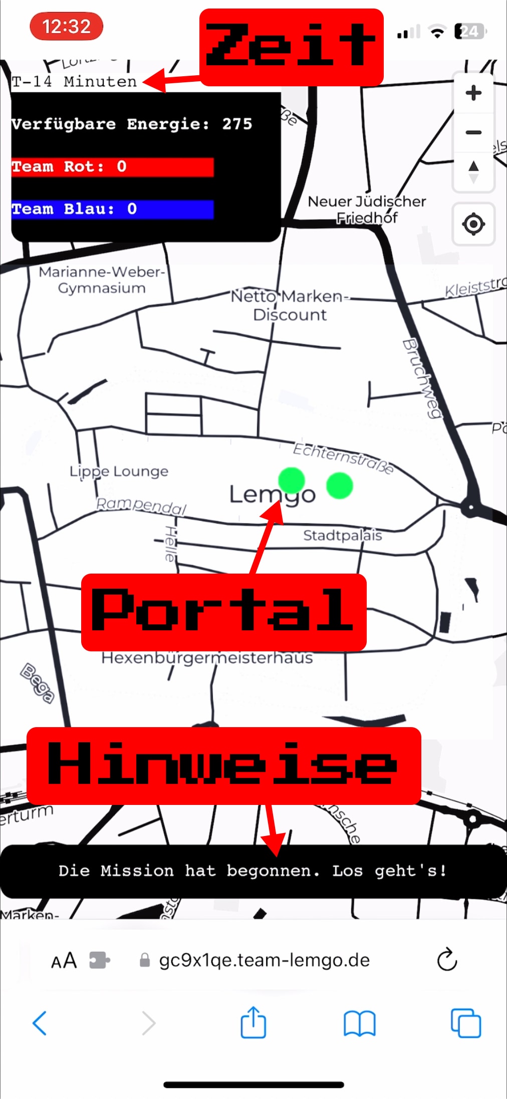 Ihr müsst die Energie sammeln und die Portale verschließen, um Lemgo vor dem Untergang zu retten.